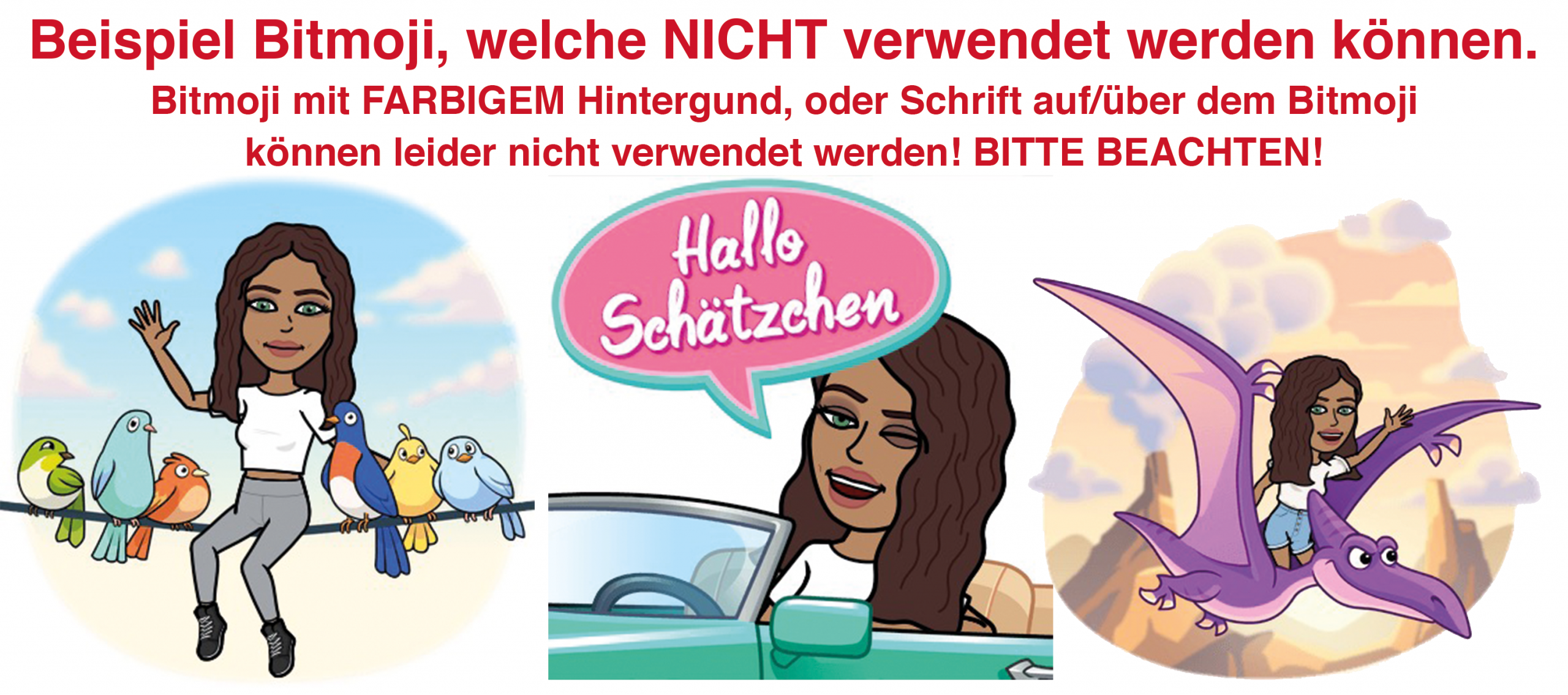 Folgende Bitmojis bitte NICHT verwenden: