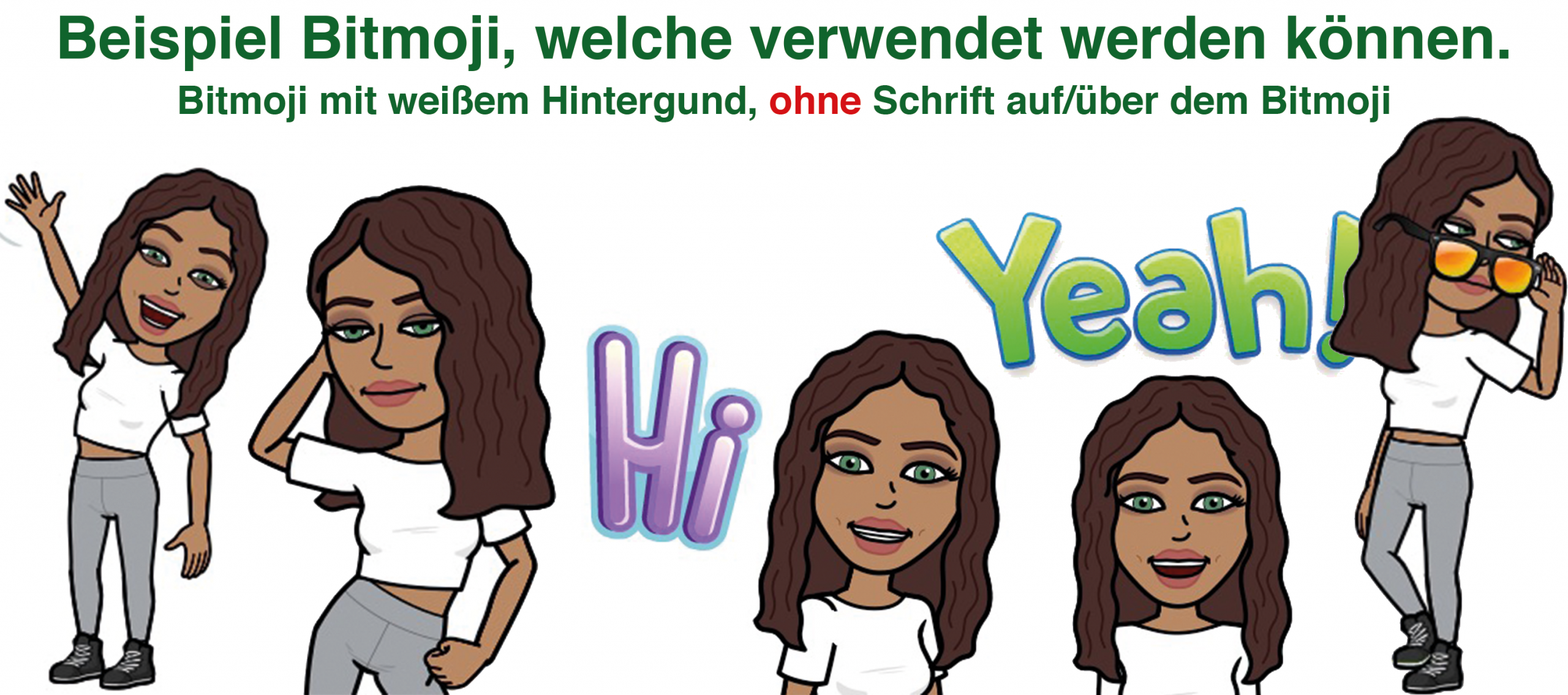 Folgende Bitmoji Beispiele können verwendet werden: